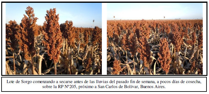 Tal como lo indicamos en el previo informe climático, precipitaciones de variada intensidad sobre gran parte del área agrícola nacional han ocasionado excesos hídricos en los campos impidiendo la recolección del cereal. Las zonas más afectadas fueron el Centro y Oeste de Buenos Aires, sumado algunas localidades puntuales del sudeste, donde hoy se prevén perdidas parciales y totales debido a encontrarse el cultivo con gran cantidad de agua en el lote habiendo finalizado su ciclo ontogénico.