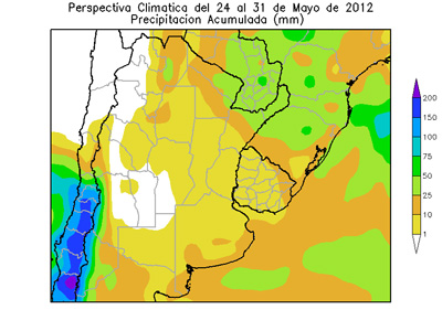 Perspectiva agroclimática nacional del 24 al 31 de mayo de 2012: tiempo nublado y lloviznoso seguido por descenso térmico