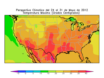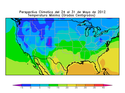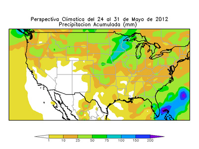 • 24-25 de Mayo: Períodos de intensas lluvias para el extremo sur de Florida. Sequía severa para sectores del sudeste, centro de las Rocallosas, sur de las Planicies, Sudoeste, sectores internos de California y la Gran Cuenca.
