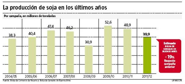 Al inicio de la campaña, las proyecciones eran que la cosecha argentina de soja se iba a ubicar en torno de los 52 millones de toneladas. Si se observa lo que prevé la Bolsa de Cereales de Buenos Aires, están faltando 12 millones de toneladas. A los precios actuales de la soja, el país está resignando divisas por unos US$ 6000 millones.