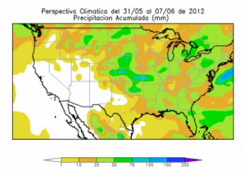 Perspectiva agroclimática para los EE.UU. del 31 de mayo al 7 de junio de 2012: precipitaciones sobre gran parte del área agrícola norteamericana y fuertes oscilaciones térmicas