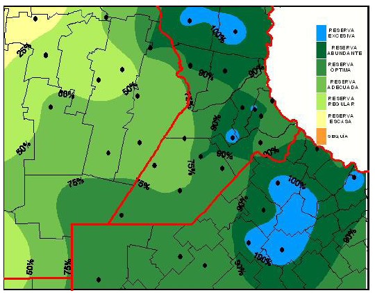 Reserva de agua útil para pradera permanente al 31/05/2011