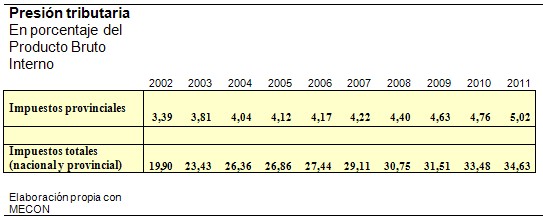 El gráfico que sigue permite ver, por ejemplo, cómo ha evolucionado tal presión en los últimos años. Se trata de la presión sobre el Producto Bruto.
