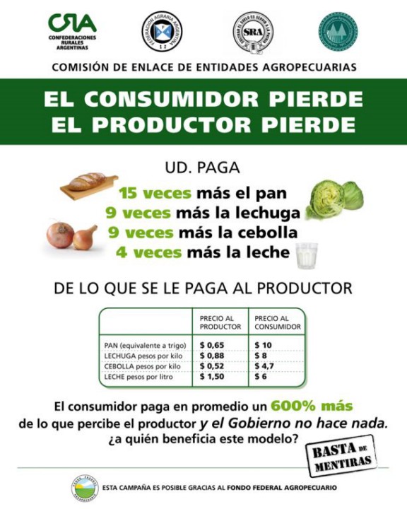 Desde la Comisión de Enlace de Entidades Agropecuarias advertimos que la situación que atraviesa el sector es grave. Venimos padeciendo hace años un modelo que determina una brutal concentración económica. En materia agropecuaria, el gobierno nacional decidió garantizar ganancias a enormes corporaciones. Así, en lugar de crear herramientas virtuosas que permitan poner equilibrio, se intervino de manera pésima a través de la Secretaría de Comercio Interior en los mercados granarios y las cadenas de comercialización de todos los rubros. El modelo privilegia a un puñado de firmas exportadoras y a grandes empresas que con el aporte de capitales financieros ajenos al sector se integran verticalmente y desplazan al sujeto agrario tradicional. Entre 2003 y 2008 esto ya había determinado la desaparición de más de 60000 pequeños y medianos productores.