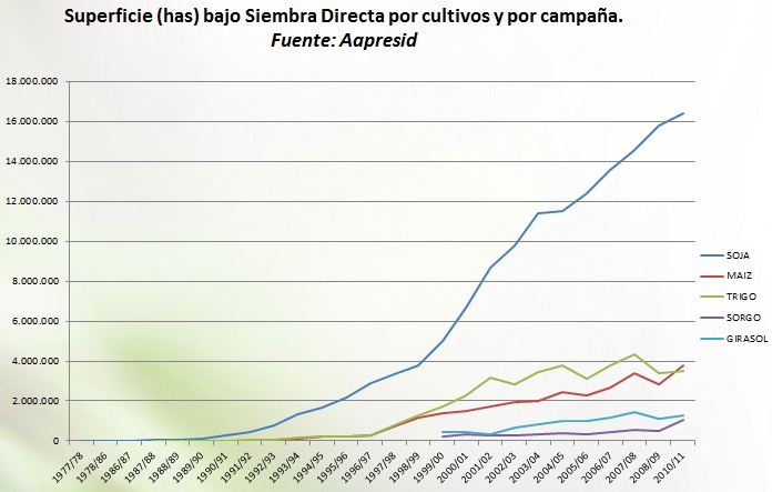 - La Asociación Argentina de Productores en Siembra Directa (Aapresid) desarrolló un programa de difusión muy eficiente desde sus inicios (1989).