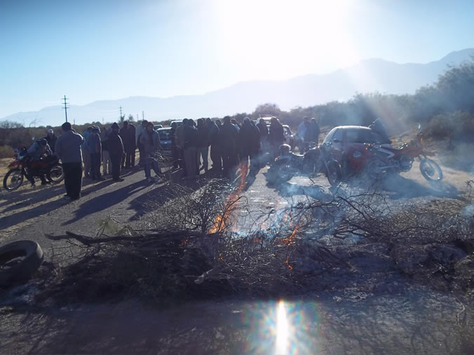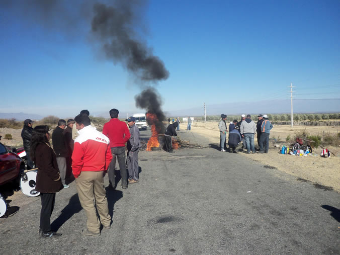 Un grupo de trabajadores rurales que fueron cesanteados de la empresa privada olivícola Promet, perteneciente al Grupo INDALO, cortan nuevamente la ruta 46 en el departamento de Pomán, desde el lunes 2/7, tras haber incendiado días atrás la planta elaboradora de aceite.
