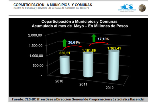 La situación es diferente si se compara 2011 con 2012, ya que al 31 de mayo del corriente año, la provincia transfirió a municipios y comunas $ 1.361,41 millones; lo que representa un incremento del 17,18% respecto a las transferencias realizadas al 31 de mayo de 2011.