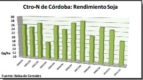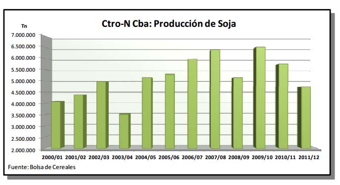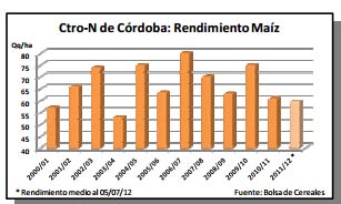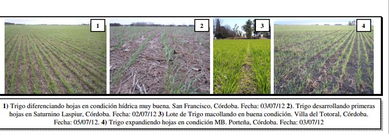 Estimaciones Agrícolas para centro norte de Córdoba, realizadas durante la primera semana de julio de 2012, elaboradas por el Departamento de Estimaciones Agrícolas de la Bolsa de Cereales de Buenos Aires: