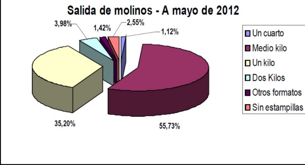 En cuanto a los formatos, los envases de medio kilo mantienen la preferencia de los consumidores. Los registros indican que durante el mes de mayo de este año los paquetes de medio kilo representaron el 55,73% de las ventas (siempre a salida de molino).