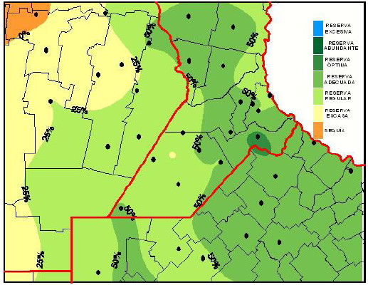 Reserva de agua útil para Pradera permanente al 19/07/2011