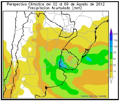 Las zonas recientemente citadas no prevén lluvias importantes dúrante los próximos días y debido a ello la cosecha podría avanzar con fluidez durante las próximos dos semanas a fin de alcanzar el cierre del presente ciclo productivo.
