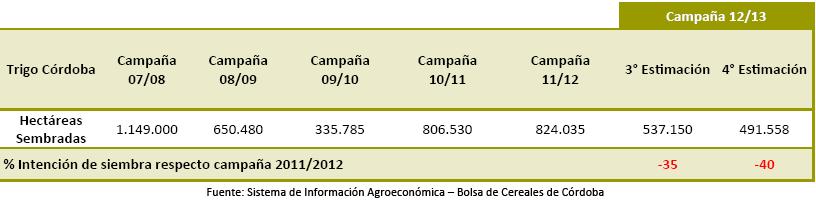 El cierre de cierra de uno de los cereales de invierno, el trigo, estima un recorte del área triguera del 40% calculando llegar a 491.558 has., valor surgido de encuestas, y de carácter provisorio que será ajustado con el avance del ciclo del cultivo.