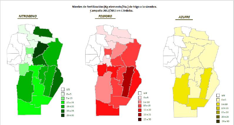 En la generalidad de los casos dicha decisión depende de humedad edáfica que permita aprovechar al máximo la aplicación del fertilizante. De acuerdo a los datos relevados por la Bolsa de Cereales de Córdoba, se utilizó una fertilización de base como arrancadora, donde los elementos principales que se incorporaron fueron Nitrógeno, Fósforo y Azufre.