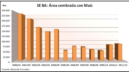 Por otra parte, el maíz percibió una siembra con destino a grano comercial de 85.000 hectáreas, cifra que representa un 2,2% del área nacional implantada durante dicho ciclo (3,87 MHas 11/12).