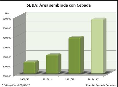 Asimismo, la siembra fina 2012/13 presentó a la cebada con un importante crecimiento sobre el área destinada a este cereal de invierno. La siembra se encontraba finalizada almomento de la gira, alcanzando una superficie estimada en 870.000 hectáreas y registrando un nuevo récord histórico de siembra en la región.