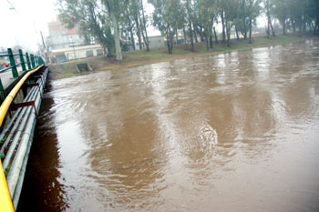 Esta es la imagen del Arroyo Pergamino, durante la mañana de ayer luego de los 103 milímetros que se registraron en esta zona: