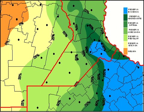 Reserva de agua útil para Pradera permanente al16/08/2011