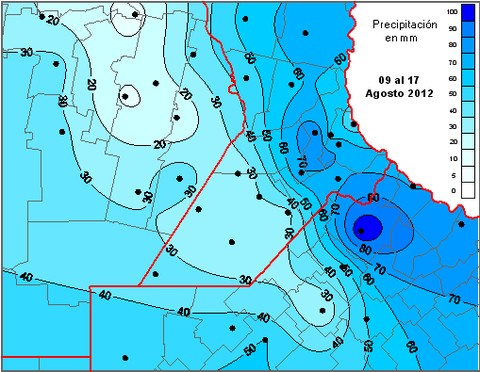 Las lluvias en la región núcleo del 9 al 17 de agosto del 2012: