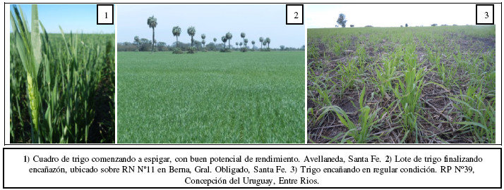 Sobre el extremo sur de la región agrícola, la situación hídrica es totalmente opuesta y en gran parte del área bonaerense, en donde se concentra aproximadamente el 50% de la superficie nacional de trigo, se relevaron excesos hídricos y anegamiento de cuadros en extensas áreas. Si bien hay varios focos de anegamientos, los más importantes se ubicarían en una gran franja con dirección Noroeste/Sudeste, que abarca desde Trenque Lauquen, Carlos Tejedor y Carlos Casares, hacia Daireaux, Olavarría y Tapalque, ubicando como centro del área anegada a la localidad de San Carlos de Bolívar. Sobre el núcleo productivo ubicado en el Sudeste de la provincia de Buenos Aires, se relevaron excesos en casi toda la región, pero en ningún caso se registraron anegamientos generalizados.