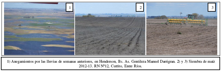 Por otro lado, damos por iniciada la campaña maicera 2012/13.Comenzaron las labores de siembra en las provincias de Santa Fe y de Entre Ríos, más específicamente en la zona Centro-Norte de Santa Fe y en el Centro-Este de Entre Ríos. En esta última el pasado día lunes (27/08/12) comenzaron con la siembra de maíz en la localidad de Cerrito, dado que la humedad registrada en los cuadros y la temperatura del suelo (12ºC) era favorable para el ingreso de la maquinaria. En los Dptos. de Gualeguay y La Paz hay excesos de humedad en el suelo, lo cual no estaría permitiendo comenzar con las labores de siembra. Sin embargo, se espera que las condiciones permitan iniciar las tareas para el fin de semana próximo. El resto de los Dptos. darían comienzo la próxima semana.