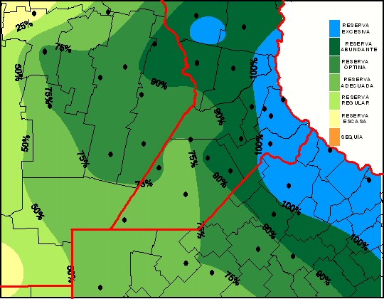 Con las condiciones presentadas y la distribución de lluvias producida durante los últimos los últimos días, se observa que las condiciones siguen siendo muy buenas, con reservas óptimas en casi toda la región GEA y algunos excesos sobre el noreste bonaerense y el sudeste santafesino. Con este escenario y la perspectiva de la llegada de un evento Niño, la situación para la campaña de la gruesa es altamente optimista respecto a la humedad del suelo.