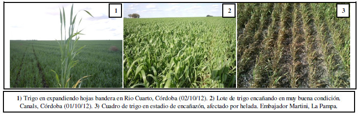 En las zonas del Núcleo Norte y Sur, gran parte de los cuadros comienzan a transitar estadíos de espigazón, etapa crítica del cultivo; por tal motivo, las precipitaciones acumuladas en los días previos son de gran importancia a fin de mantener las muy buenas condiciones que presenta el mismo y las buenas perspectivas de rendimiento. Por otro lado, se registraron heladas en algunos sectores del Núcleo Norte, ocasionando mermas en el potencial de rendimiento en aquellos cuadros que se encuentran en la fase de espigazón.