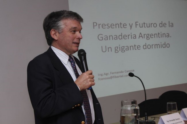 Fernando Canosa se refirió a la Argentina como un “gigante dormido”, ya que en la misma superficie, con las mismas vacas, incorporando la tecnología disponible, el país está en condiciones de duplicar su producción, incorporando un millón y medio de toneladas más a las que se producen. Aseguró también que “se puede llegar a los cuatro millones y medio de toneladas de carne. El futuro puede ser muy promisorio, la demanda de carne tanto interna como externa es creciente, el país tiene grandes posibilidades de crecer”.
