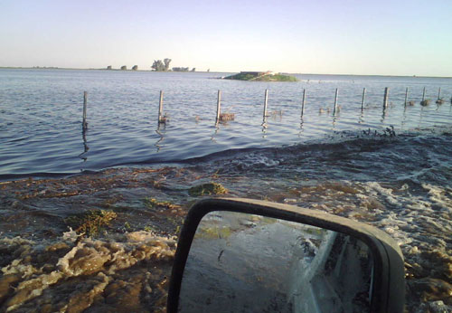 El Ing. Ricardo Arregui, Pte. de la Asociación de Productores Rurales de Marcos Juárez, afirma:” Aquí hay entre 15 y 20 mil hectáreas bajo el agua. La siembra de la soja se está complicando porque no se puede entrar a los campos ya que los caminos están intransitables. Desde Agosto hasta hoy hubo una cantidad de 600 mm en menos de tres meses. Las rutas que se cortaron fueron: la 12 y la vieja ruta 9”.