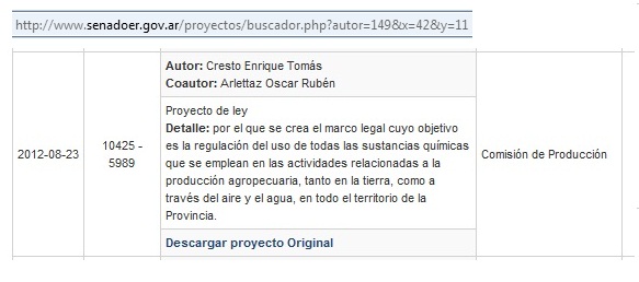 El pasado 23 de agosto ingresó en el Senado provincial el expediente 10425-5989; presentado por Enrique Tomás Cresto y Oscar Rubén Arlettaz.