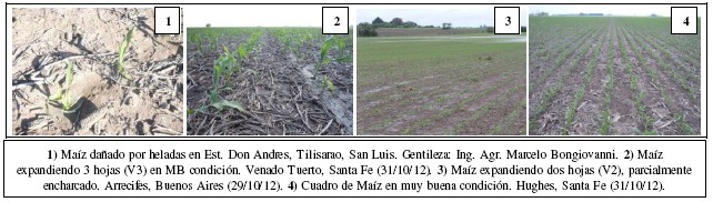 A su vez, en las zonas núcleo Norte y Sur, Centro Este de Entre Ríos, Norte de La Pampa-Oeste de Buenos Aires, la inquietud mayor por parte del productor es que hacer con las hectáreas que aún no ha podido sembrar en fechas tempranas, en tal caso pasarlas en su totalidad a siembras del mes de diciembre (tardías) o parte de esa superficie destinarlas al cultivo de Soja. Por otra parte, los cuadros que deban ser resembrados debido a las pérdidas ocasionadas por el agua, se sembrarían en su mayoría con el cultivo de soja.