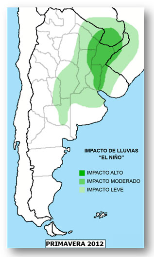 Gráfico 2. Proyección de impacto del fenómeno El Niño 2012/13 en el territorio argentino