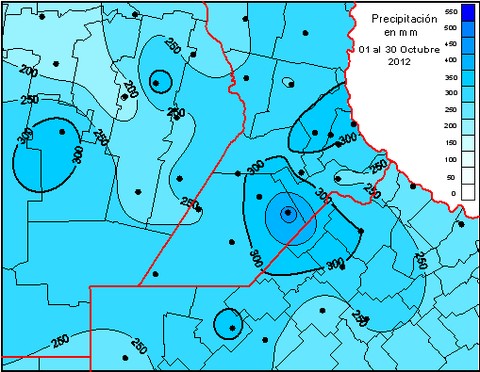 Lluvias acumuladas durante el mes de octubre de 2012