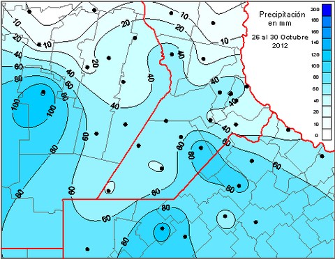Las lluvias acumuladas en GEA de los días 27 a 30 de octubre: