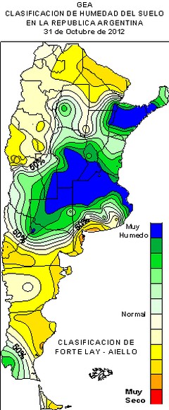 Los acumulados de octubre para la región núcleo muestran que el 80% del área recibió entre 250 y 430 mm. Superaron los 300 mm registrados zonas como Labordeboy con 426 mm, Pujato con 332 mm, Rosario con 323 mm, Chovet y Zavalla con 321 mm y Bellville con 319 mm, entre otras localidades. Muy cerca, por debajo de los 300 quedaron, por ejemplo, Gral Pinto con 298 mm y Pergamino con 280 mm.
