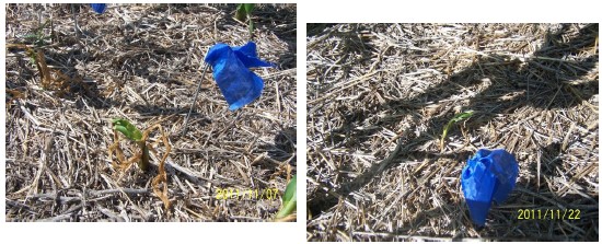 Ficha Azul: corresponde a plantas que han presentado un nivel tan severo de daño, que se estima que no prosperaran, no pudiendo así completar el ciclo del cultivo. (Severidad 4)