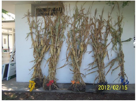 Una vez culminado el ciclo del cultivo, se procedió a cosechar las plantas marcadas correspondientes a los diferentes niveles de daño. La cosecha consistió a la extracción de plantas enteras, donde se evaluó altura de plantas hasta la inserción de la panoja, número de hileras, número de granos por hilera, número total de granos por espiga, peso 1000 granos y diámetro de tallo tomado a los 8 cm por encima de la corona de raíces secundarias.Una vez obtenidos los datos, se procedió a realizar los análisis correspondientes.
