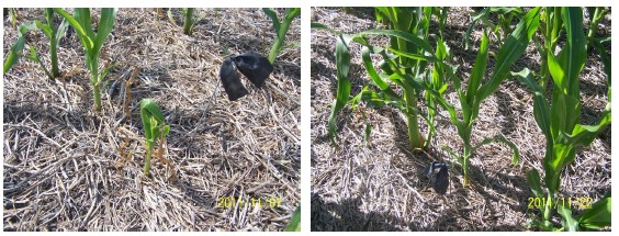 Ficha Negra: plantas que presentan una alta intensidad de daño con una disminución marcada en el crecimiento (de menor tamaño). (Severidad 3)