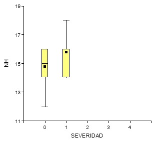 Gráfico 4: Número de hileras por espiga en función del grado de severidad