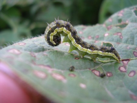 “Cambia la estrategia en la fase final, donde la oruga sólo come los granos”, por lo tanto la ingestión como estrategia deja de tener importancia y se impone el volteo con insecticidas de contacto.