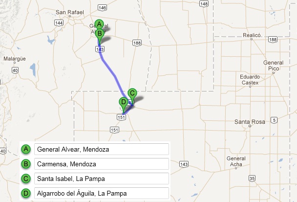 A continuación un gráfico armado con la herramienta “Google Maps”, para situar las distintas localidades que el Ing. Lastiri menciona en la entrevista.