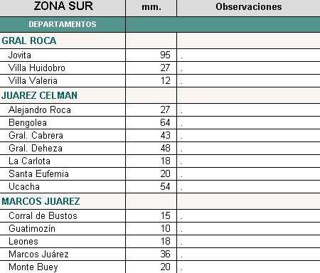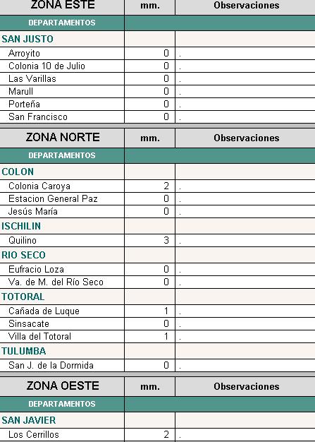 Este es el último informe del Departamento de Información Agroeconómica de la Bolsa de Cereales de Córdoba sobre los registros pluviométricos de la Provincia de Córdoba relevados en las localidades índices.