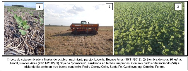 Los primeros lotes implantados han sufrido heladas tardías, aunque hoy presentan buenas condiciones de cultivo ya que se recuperaron adecuadamente. En el Núcleo Norte los cuadros sembrados hacia fines de octubre transitan las primeras etapas vegetativas, habiendo sufrido en algunos casos planchado en los primeros centímetros del suelo por las fuertes lluvias recibidas, como así también anegamientos en campos bajos.