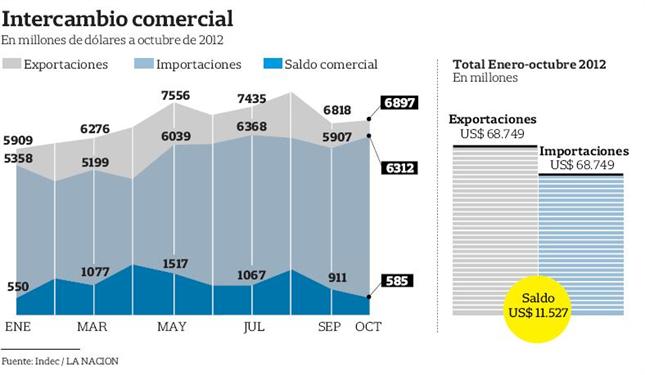 Las cifras tienen correlación con las del último informe de la consultora DNI, que dirige Marcelo Elizondo: señala que hasta octubre el superávit comercial superó los 11.000 millones de dólares, apoyado por los saldos muy favorables del sector agropecuario y de la exportación de metales preciosos. La industria, en cambio, tiene un déficit importante, ya que pese a las fuertes restricciones actuales importa más de lo que exporta. Y se suma también la fuerte salida de divisas del sector de energía y combustibles. Una mejor cosecha gruesa que la última, muy afectada por la sequía, agregaría más dólares al mercado local, agregó el informe de DNI.