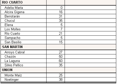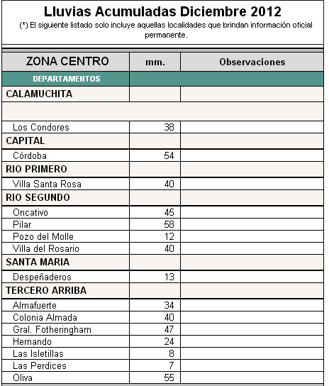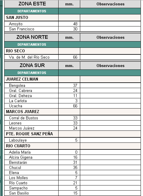 Últimas precipitaciones informadas por la Bolsa de Cereales de Córdoba: