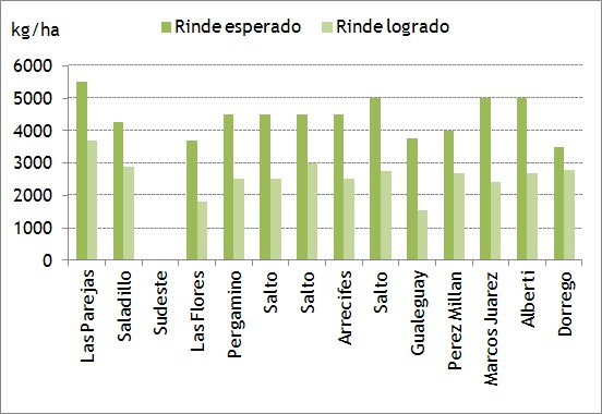 Como se observa en el gráfico 1, en la mayoría de los casos los rindes esperados