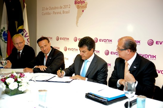 Durante un evento realizado en la ciudad de Curitiba, los representantes de la empresa Evonik y las autoridades del estado de Paraná firmaron un acuerdo para la construcción de una planta para la elaboración de Biolys® en la ciudad de Castro, dentro del complejo industrial de la empresa Cargill.