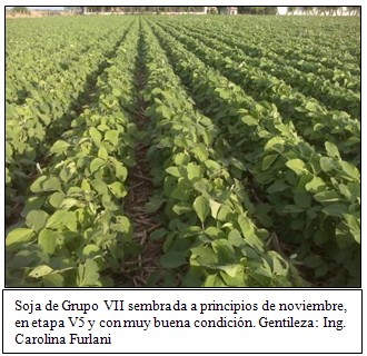 En el sur bonaerense y pampeano, en donde se concentra cerca del 50 % del área agrícola nacional, los cuadros evolucionan favorablemente en estadios que van desde V1 a V7 (uno a siete pares de hojas desarrolladas). Las buenas condiciones hídricas que presentan dichas regiones hacen que los plantíos transiten etapas vegetativas en óptimas condiciones.
