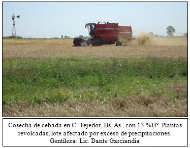 Respecto de los rendimientos obtenidos, tal como se mencionó en los informes previos, las zonas más afectadas por enfermedades fúngicas y por consiguiente con fuertes mermas de rendimiento, fueron los Núcleos Norte y Sur, y el Centro y Oeste bonaerense, regiones que aportan en su conjunto el 24 % del área nacional del cultivo. Además de estas adversidades, otros factores que complicaron al cultivo de cebada fueron las elevadas temperaturas durante gran parte del ciclo y la baja radiación que recibió el cultivo durante el mes de noviembre.