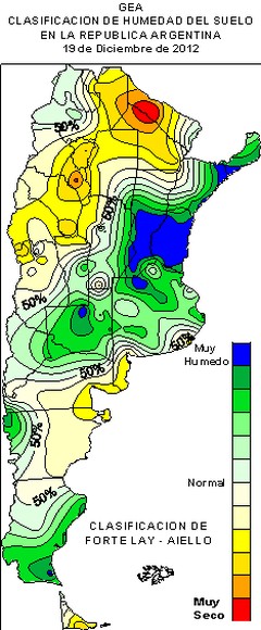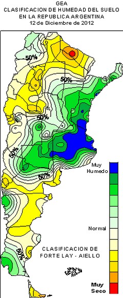 Reserva de agua útil para soja al 20/12/2012