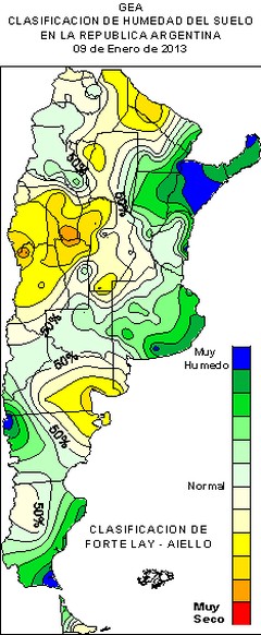 Reserva de agua útil para Soja permanente al 09/01/2013